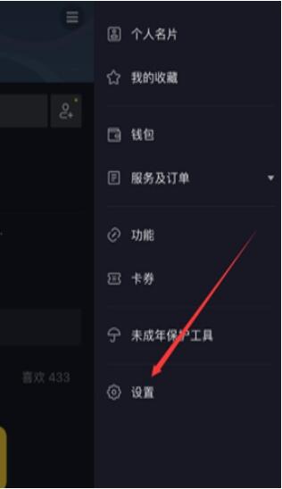 此时,会弹出一个页面,点击其中的"设置",进入抖音的系统功能设置,如图所示。