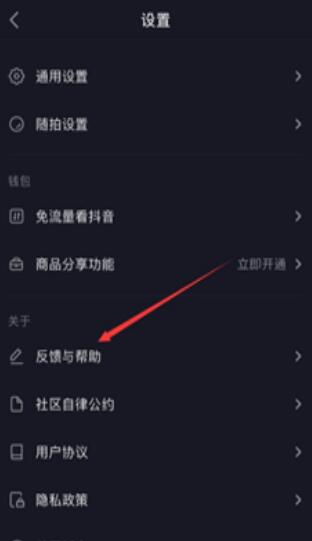 进入设置之后,选择其中的“反馈与帮助”,如图所示。